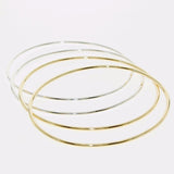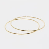 Inspired by the simplicity of clean geometric shapes, this bangle slides over the wrist, creating a sliver of gold on the wrist. Handmade from 18 karat gold round wire, the bangle is oval and can be worn in a stack or on its own. It is the perfect everyday luxury accessory.