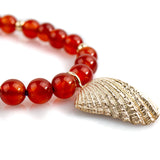 Carnelian and gold shell necklace