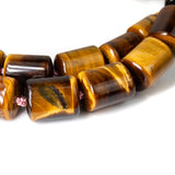 Tiger eye beads 10 x 13mm, 18kt yellow gold clasp, silk thread. Handmade in Australia. Measures 46cm long.