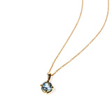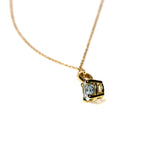 Aquamarine splash sitting on the finest 18kt Italian gold chain. This dainty brilliant cut aquamarine is set on a four prong 18kt gold pendant and held at the 'sweet spot' of the neckline, not too short, not too long.