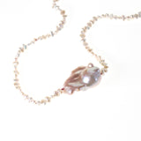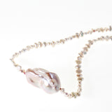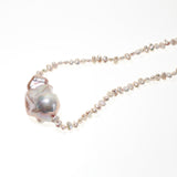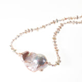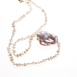 Pearls pearls pearls! A large pink hued baroque pearl is strung on a necklace of fine seed pearls for the ultimate beach girl feel.