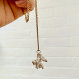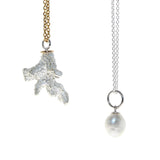 A tiny branch of coral found on the beach has been carefully cast in silver. This pendant is designed with a simple setting, giving full credit to the detail found naturally in the coral structure.