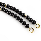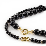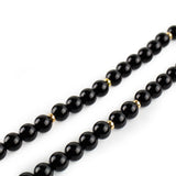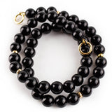 Perfectly black polished onyx beads are hand knotted on silk and accented with solid gold. This necklace is a bit classic a bit rockstar and never out of style. It sits high on the neck and is designed for front closure using either our small or large gold connectors (available for purchase separately).