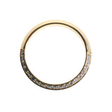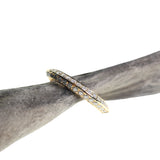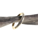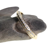 This 18kt yellow gold band is adorned with knife edge-set diamonds along half its circumference. Its bold and elegant design complements other rings beautifully, making it the perfect choice for a wedding band or a special gift.