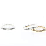 Satisfying our need for simple forms and simple geometry, these rings are a perfect circle formed by a triangular metal wire.